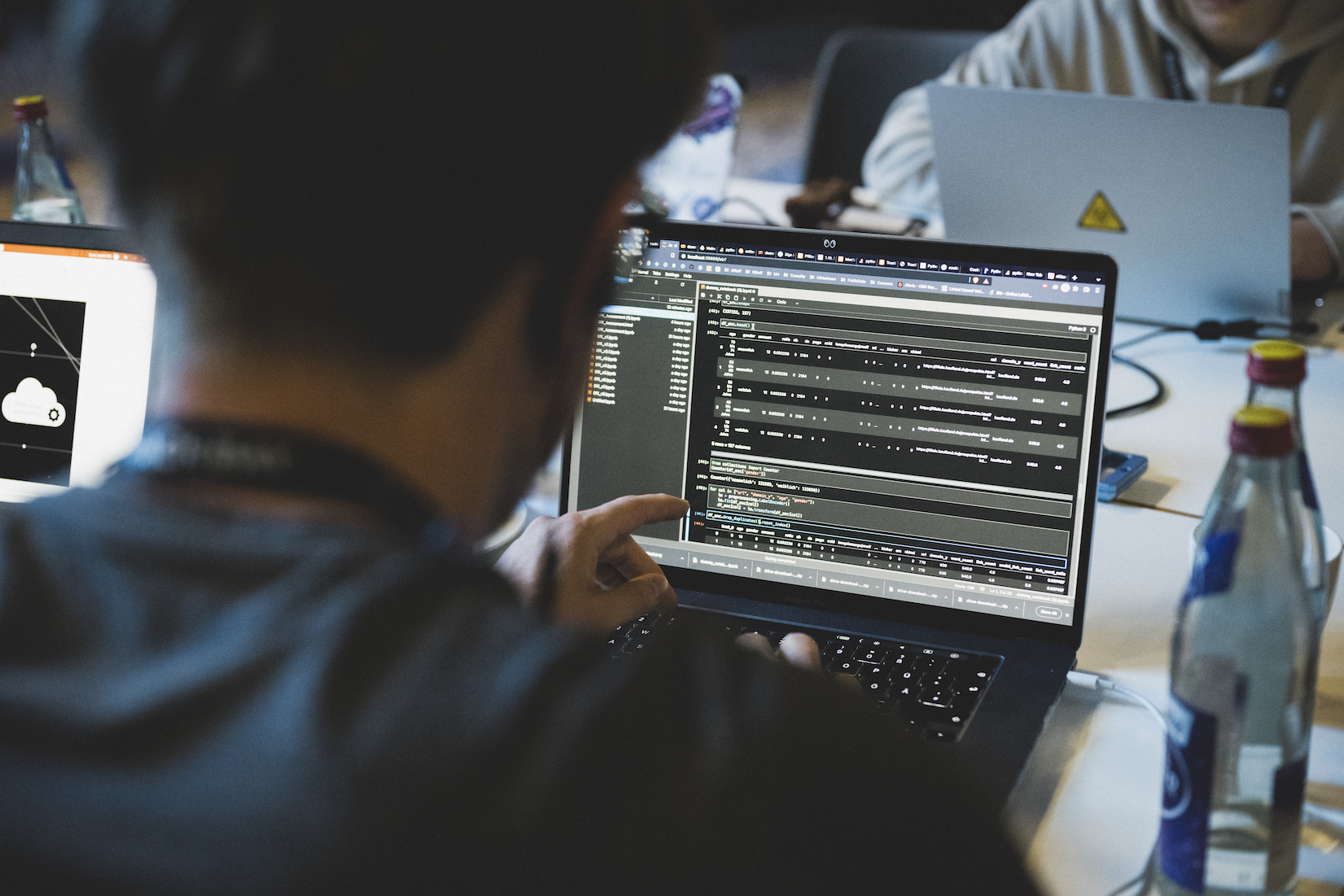 At a hackathon, prototypes for given challenges are developed within a short period of time.